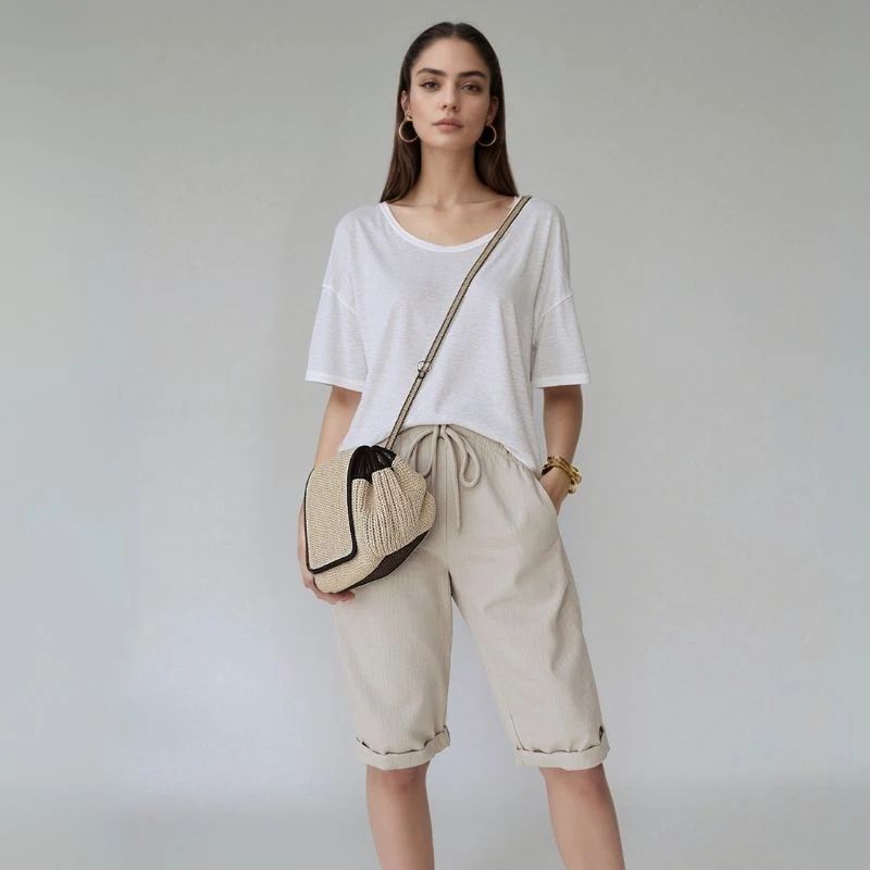 Não perca a oportunidade de garantir um visual moderno e confortável! Adquira agora a sua Bermuda Feminina Soltinha Algodão Bege Belle e destaque-se com muito estilo e praticidade!