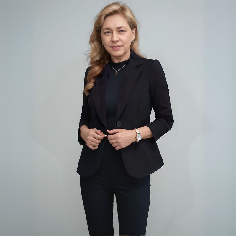 Apresenta modelagem lisa e colarinho entalhado com botão acabamento refinado. Esta peça é essencial no seu guarda roupa devido a sua versatilidade de combinar com blusas e saias ou calças, permitindo um estilo sofisticado e de tirar o fôlego.