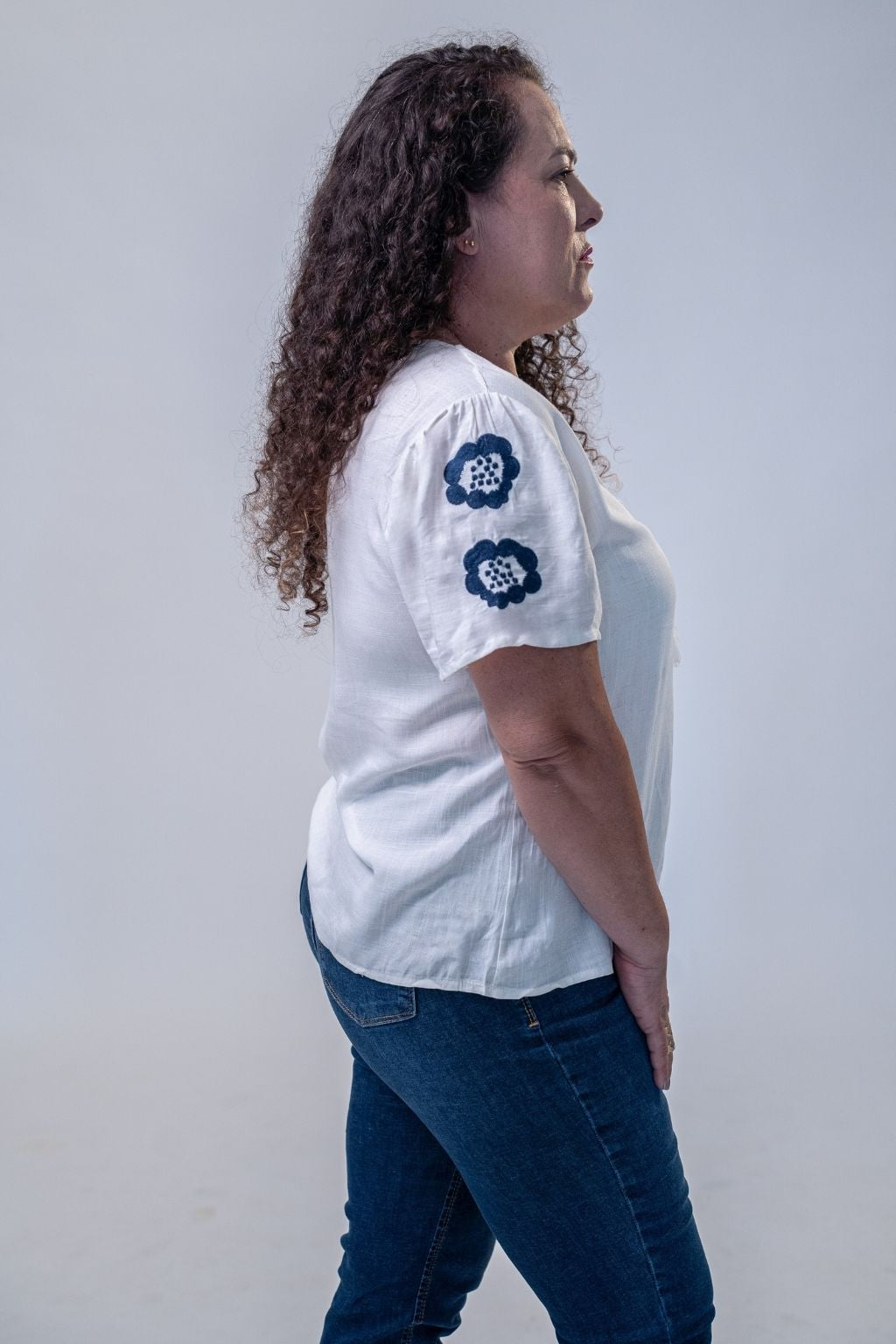 Confeccionada em linho de toque macio e respirável, entrega conforto absoluto e caimento leve, enquanto os bordados delicados adicionam exclusividade e charme sutil ao visual. Uma peça versátil, ideal para composições elegantes em qualquer estação.