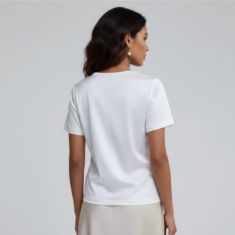 Adicione sofisticação ao seu guarda-roupa com a Blusa De Seda Feminina Branca Maya. Garanta a sua agora e experimente o conforto e a elegância que só a seda pode oferecer!