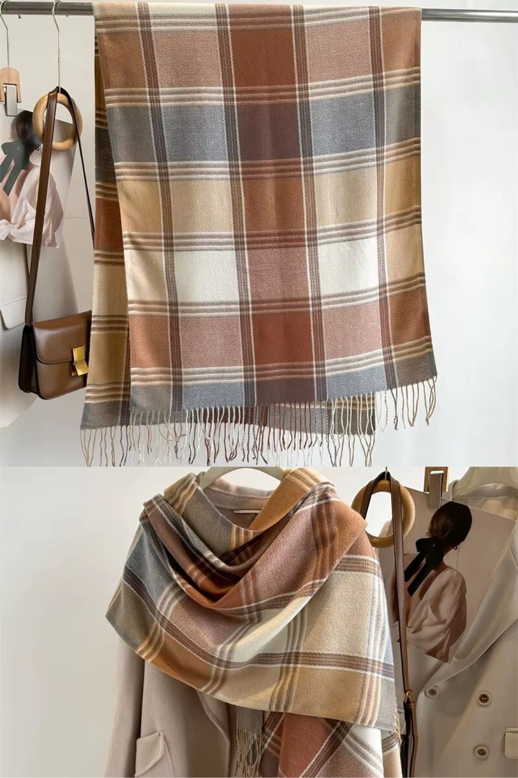 Cachecol Feminino Longo Xadrez é para mulheres que gostam de imprimir estilo com leveza e personalidade. Sua estampa clássica em tons terrosos combina com tudo e transforma até os visuais mais neutros.