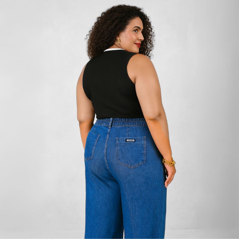 O corte wide leg cria um efeito alongador que favorece diferentes tipos de corpo, trazendo um visual elegante e fluido em cada passo.