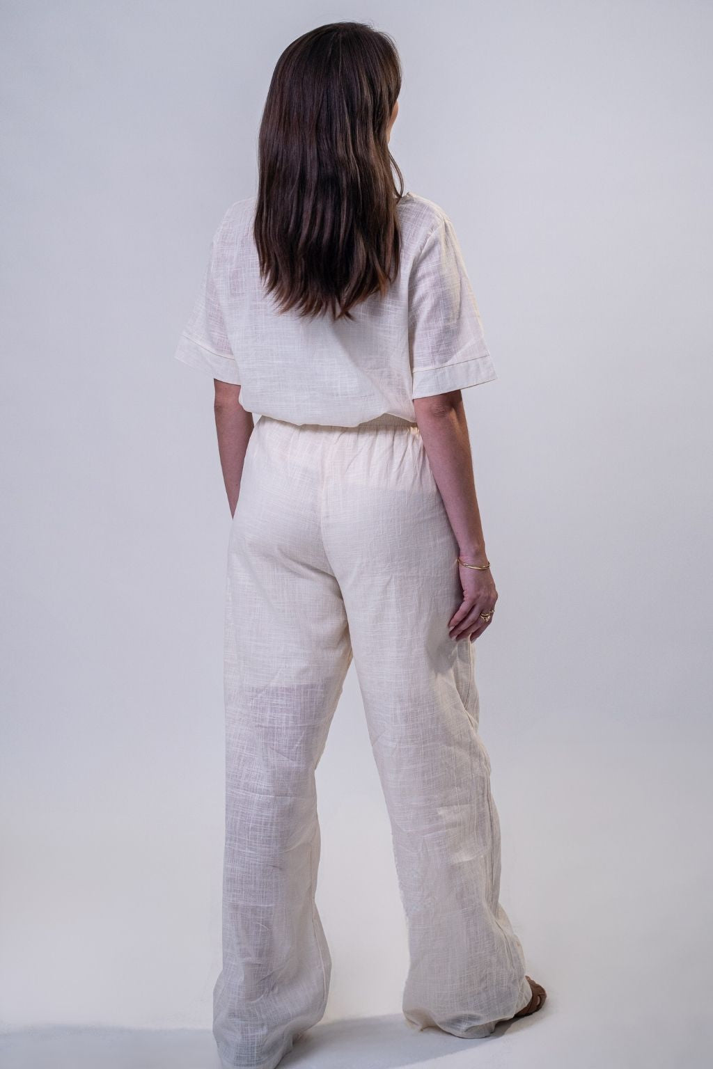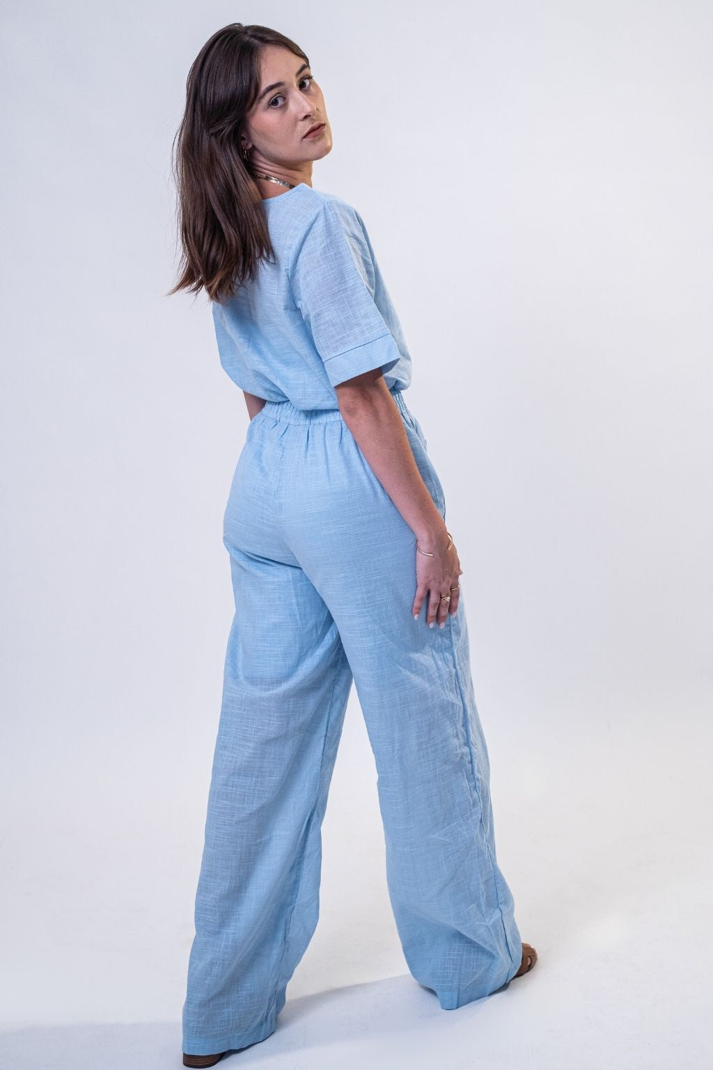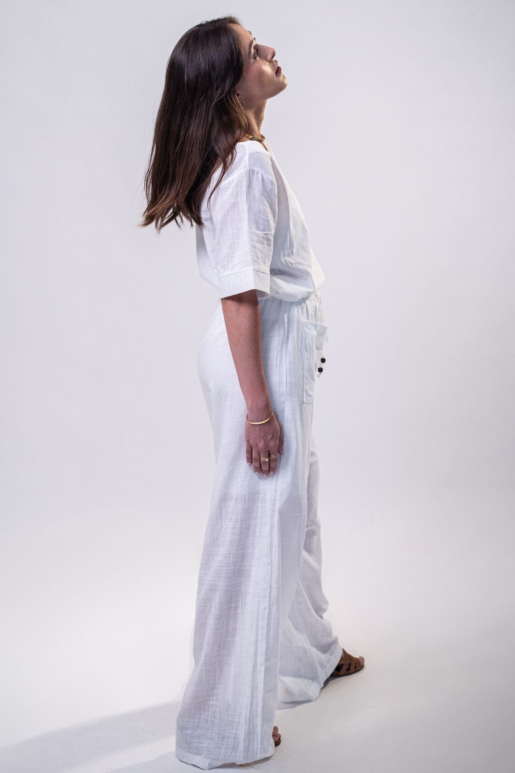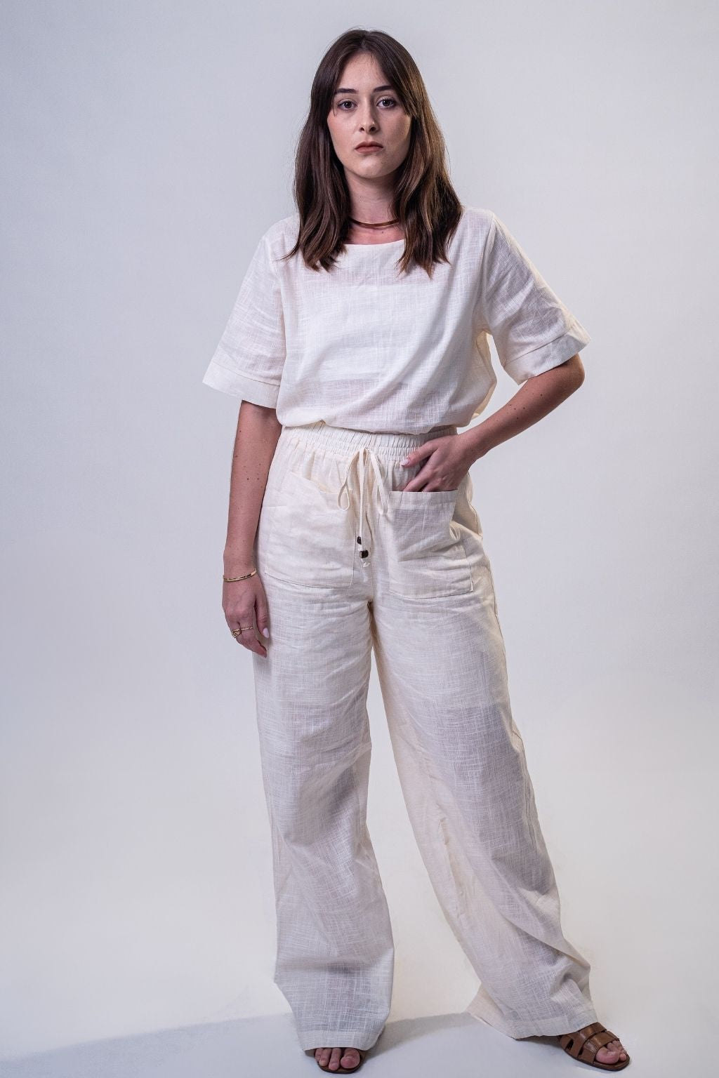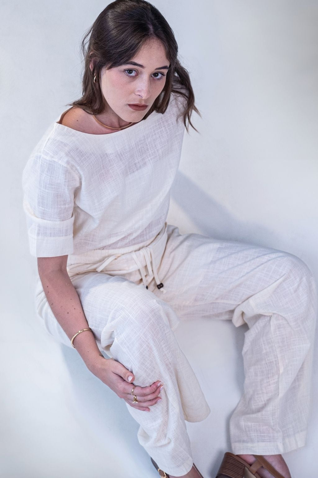 Confeccionado em linho de toque macio e respirável, entrega caimento impecável, movimento natural e acabamento limpo que eleva o visual com sutileza. Ideal para dias quentes, viagens, momentos especiais ou produções elegantes sem esforço.