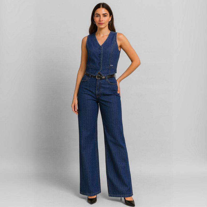 O Conjunto Calça e Colete Jeans Yumi traz a sofisticação do jeans premium em uma combinação versátil e moderna. Com design exclusivo, esse conjunto jeans feminino une conforto, autenticidade e elegância para te acompanhar em todas as ocasiões.