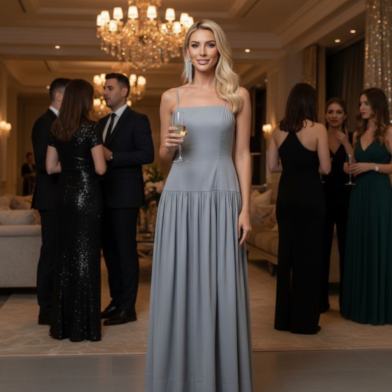 O Vestido Longo Elegante Tricoline Cinza traduz sofisticação em sua forma mais atemporal. Criado para mulheres que valorizam o equilíbrio entre elegância e conforto, é a peça ideal para acompanhar ocasiões especiais e momentos marcantes.
